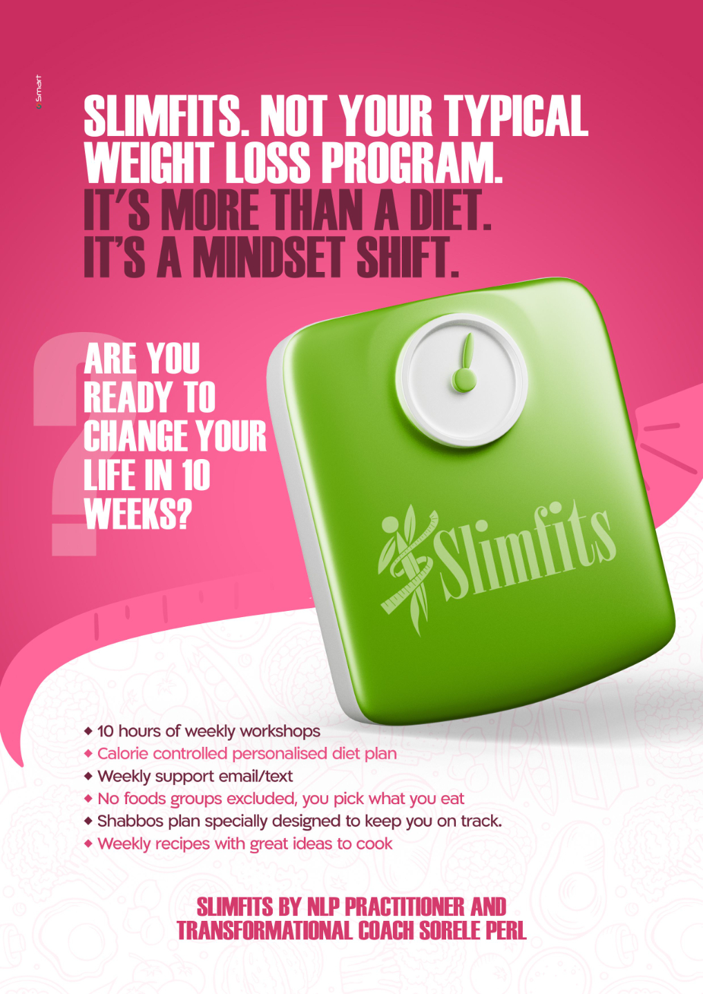 Slimfits is not just another diet—it’s a deep, respectful, and results-driven transformation for the frum woman who wants more than just weight loss. You’ll be guided step-by-step through a powerful blend of structured eating, mindset coaching, emotional healing, and personal accountability—all in a program designed to fit into real frum life (Shabbos, simchas and all).
